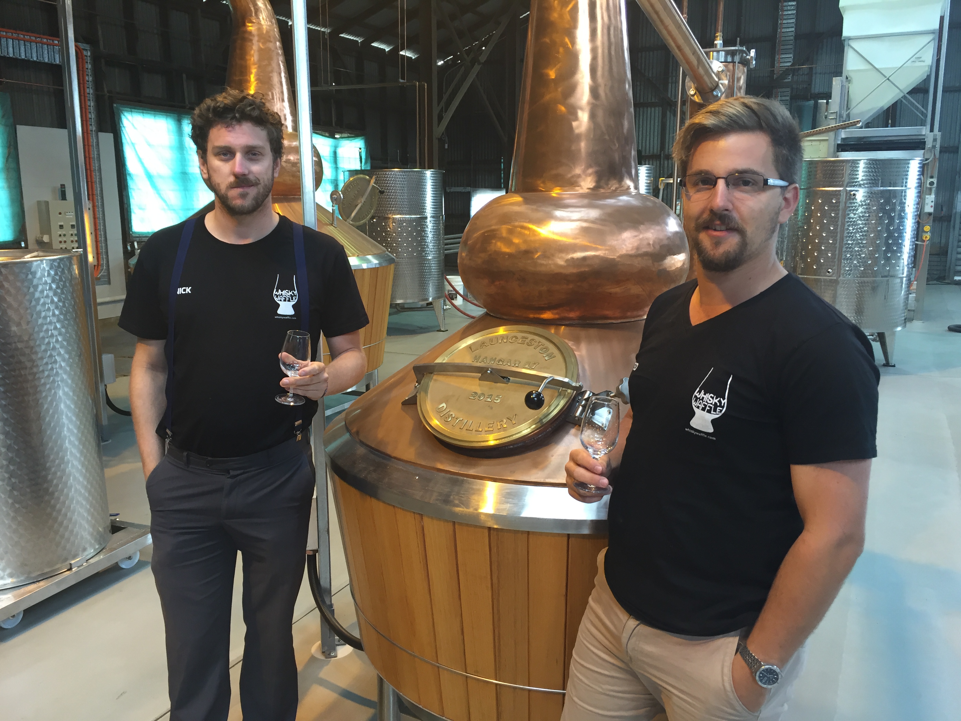 It’s certainly an awe-inspiring sight the first time you enter the great expanse of Hangar 17 at Launceston Airport and behold the gleaming distilling equipment laid out on the floor. It’s certainly not what you’d expect to find in Ansett Airlines’ long-neglected freight facility, until recently a lair for birds and dust. Thankfully the birds have been evicted and the dust laboriously scoured from the exposed metal girders to provide a home for Launceston’s first distillery in 175 years.On a recent trip to Launceston the Whisky Waffle boys had the great pleasure of meeting Ilya, Peta and Chris, three members of the team, and checking out their state of the art distillery. Their set up is certainly impressive: the stunningly beautiful Tasmanian-built stills stand proudly in the centre of the gigantic room. This is no small-scale operation – you can tell these guys are serious about their whisky-making, in part evidenced by the fact that they have both a wash still and a spirit still, often not the norm for smaller-scale ventures.